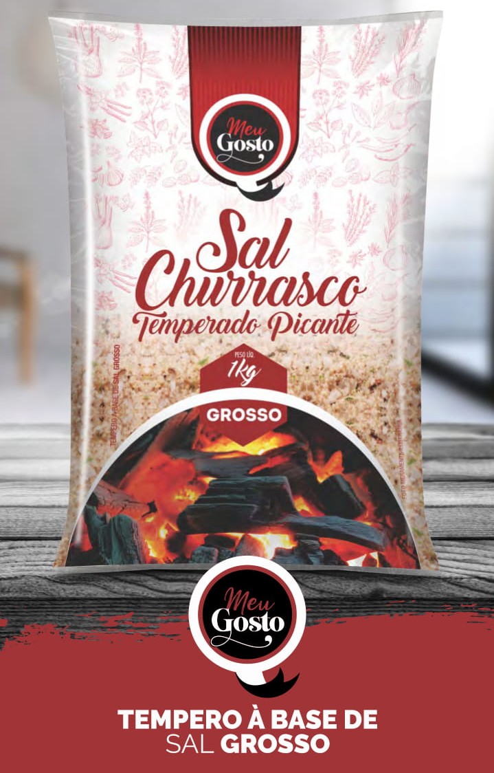O Sal Grosso para Churrasco Meu Gosto proporciona sabor e cor especiais no seu churrasco. Vai bem com todos tipos de carnes grelhadas ou assadas e até vegetais na brasa. Usar na mesma proporção que o sal comum.