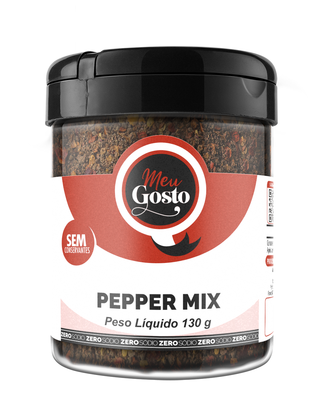 O tempero Pepper Mix Meu Gosto pode ser utilizado no preparo de carnes bovinas, suínas e aves. Saborizar especialmente sopas, saladas de folhas e legumes cozidos. RÓTULO BASE VERMELHO 180C