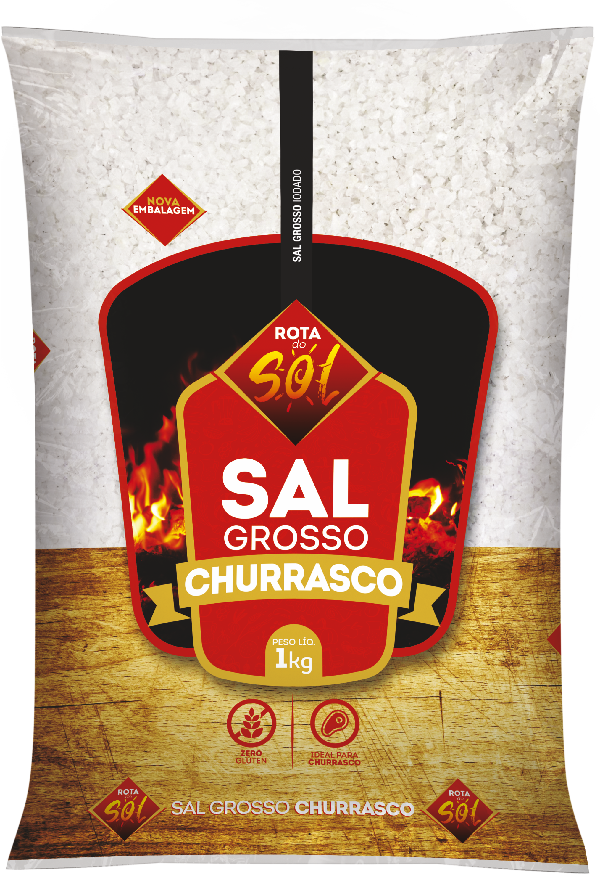 O Sal Grosso Temperado Rota do Sol proporciona sabor especial no seu churrasco. Vai bem com todos os tipo de carnes vermelhas, brancas, pescados e até vegetais na brasa.