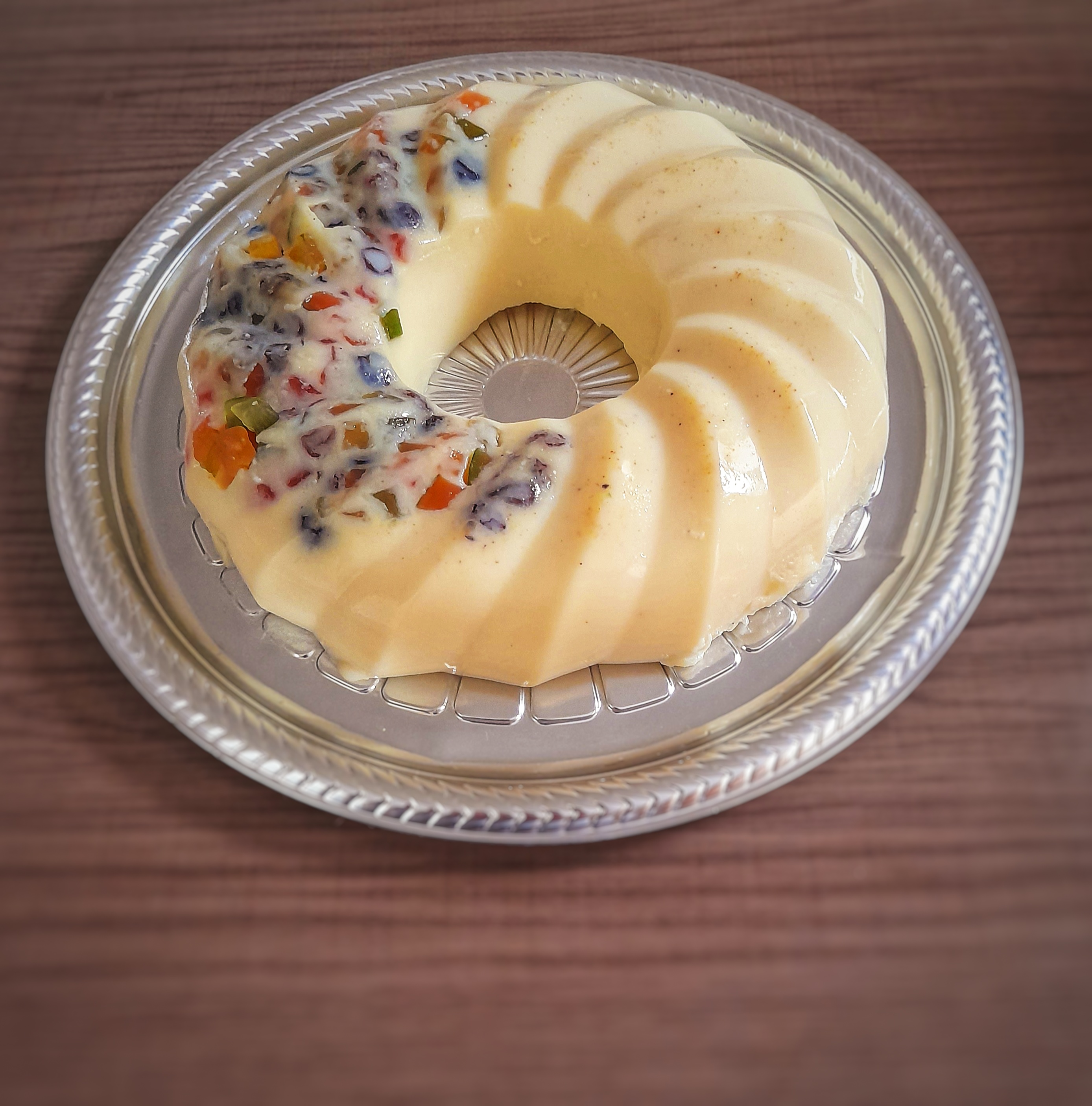 Em uma panela acrescente o leite,creme de leite e o açúcar demerara meu Gosto .leve todos os ingredientes para aquecer em fogo baixo mexendo sempre. Em seguida acrescente a pasta saborizante de panetone o pacote de coco ralado seco e a gelatina incolor já hidratada mexa bem por mais 3 minutos até que os ingredientes estejam bem incorporados .Delicadamente despeje a mistura dentro de uma forma de pudim e finalize com as frutas cristalizadas dentro.Leve para gelar por 4 horas .